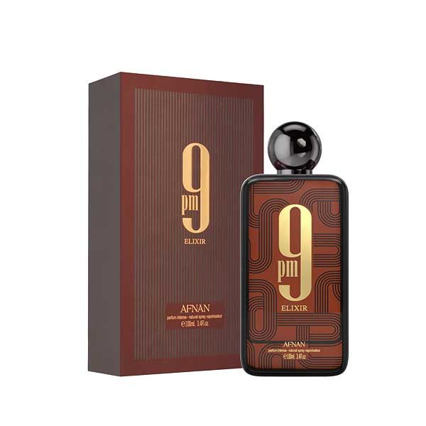Afnan 9PM Elixir Parfum Unisex 100ml este un parfum ambrat condimentat, lansat în 2025 de creatorul Imran Fazlani. Debutul captivant combină cardamom, nucșoară și elemi, continuând cu accente aromate de pimento, pielărie și lavandă. Baza caldă de vanilie, paciuli, labdanum și trandafir de stâncă conferă profunzime și persistență, creând o prezență olfactivă intensă, sofisticată și memorabilă.