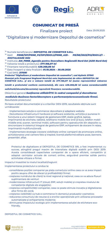REGIO NE Comunicat De Presa: MySMIS:317091