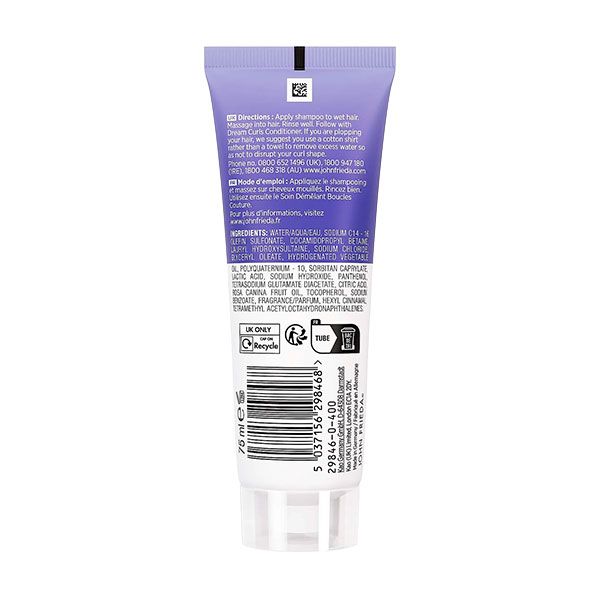 Șamponul John Frieda Dream Curls oferă o curățare delicată și hidratantă, fiind special conceput pentru nevoile părului creț și ondulat natural. Formulat cu ulei de măceșe și tehnologie de evidențiere a buclelor, acest produs elimină acumulările de impurități fără a priva părul de uleiurile sale naturale esențiale. Acesta facilitează descurcarea instantanee a firelor și definește fiecare buclă pentru un aspect elastic, plin de vitalitate și volum. Formula sa vegană, fără sulfați (SLS/SLES), oferă protecție împotriva umidității și a efectului de încrețire nedorit. Este un produs sigur pentru părul vopsit, lăsând în urmă parfumul sofisticat AuraBoost cu note de chihlimbar și patchouli.