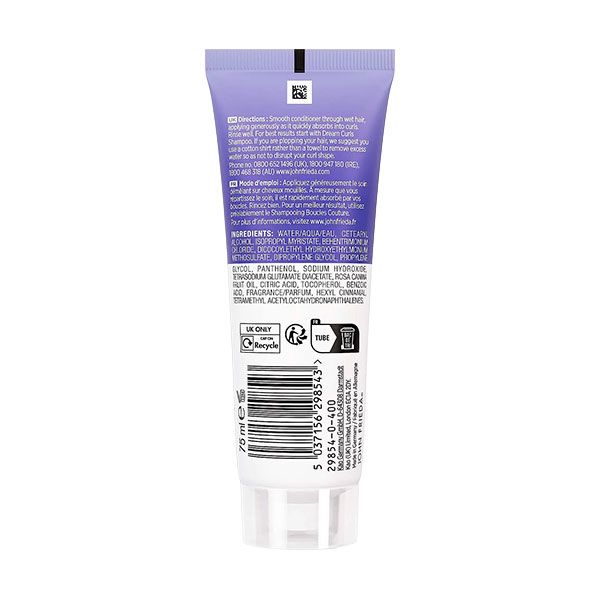 Balsamul John Frieda Frizz Ease Dream Curls este special formulat pentru a hrăni și descâlci eficient părul creț sau ondulat. Bazat pe o tehnologie avansată de definire a buclelor și îmbogățit cu ulei de măceșe, acest produs oferă hidratarea profundă de care părul are nevoie pentru a-și păstra forma naturală. Formula sa cremoasă netezește instantaneu firele rebele și oferă protecție împotriva umidității, asigurând bucle elastice și pline de vitalitate. Produsul este sigur pentru utilizarea pe părul vopsit și are o compoziție vegană. Utilizarea sa transformă textura aspră într-una catifelată, lăsând părul ușor de coafat, strălucitor și cu un aspect sănătos, fără a-l încărca.