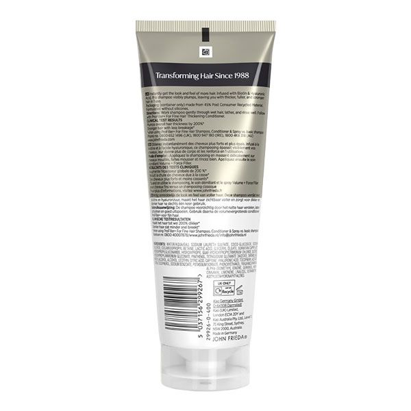 Transformă aspectul părului fin cu șamponul John Frieda PROfiller+, o soluție profesională pentru densitate. Infuzat cu biotină și acid hialuronic, acest șampon curăță eficient în timp ce fortifică structura capilară. Formula sa fără silicon este ideală pentru a preveni ruperea și pentru a oferi un volum natural, fără a încărca firele. Părul devine vizibil mai des și mai rezistent, beneficiind de o hidratare echilibrată. Ideal pentru utilizare zilnică, produsul asigură un suport structural de durată, fiind o etapă esențială în ritualul de îngrijire pentru un păr cu aspect sănătos și bogat.