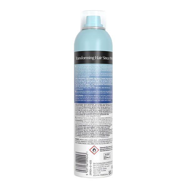 John Frieda Volume Lift Hold the Lift este un spray fixativ conceput special pentru a oferi susținere și structură părului fin. Formula sa avansată utilizează tehnologia Air-Silk pentru a asigura o fixare fermă, păstrând în același timp o textură flexibilă și plăcută la atingere. Produsul eliberează o pulverizare ultra-fină care ajută la menținerea volumului de la rădăcină, fără a lăsa părul rigid sau încărcat. Acesta oferă control de durată asupra coafurii, fiind în același timp ușor de îndepărtat prin simplă periere. Este soluția ideală pentru a transforma părul plat într-o coafură cu aspect plin de vitalitate și mișcare naturală.