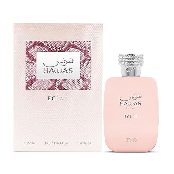 Rasasi Hawas Eclat este o apă de parfum pentru femei cu deschidere fructată de litchi, bergamotă, pară și fistic ce oferă o prospețime luminoasă și captivantă. Inima florală de trandafir și tămâie adaugă un caracter sensual și echilibrat, iar baza caldă de vanilie, ambră, mosc și note lemnoase conferă profunzime și persistență.